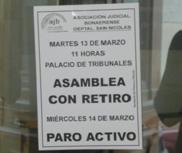 Los judiciales enrolados en la AJB realizaron asambleas en las departamentales bonaerenses. Mientras que este miércoles realizan un “paro total” en consonancia con una medida decretada por la Federación Judicial en todo el país. Esta medida impidió el normal funcionamiento de los tribunales, incluido el de la ciudad de San Nicolás donde también se realizaron asambleas.