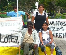 La Sra. Blanca Dora López se encuentra encadenada frente a los Tribunales solicitando la libertad de su hijo Ariel Antonio Miguel López de 32 años que hace 3 meses se encuentra detenido en la UP3. Lopez habría sido aprendido por lesiones tras una pelea callejera pero luego se comprobó que no había participado de la reyerta pero quedó detenido por una causa del año 2005.
