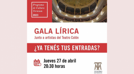 En el marco del Programa Cultura Ternium, se invita a la comunidad a participar el jueves 27 de abril a las 20.30 horas, de la Gala Lírica junto a artistas del Teatro Colón, en el Teatro Rafael de Aguiar de San Nicolás.