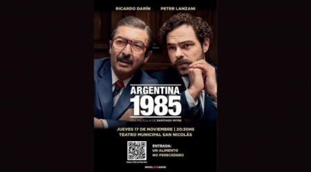 Por iniciativa de la UCR San Nicolás, el jueves 17 de noviembre, a las 20.30 hs, se proyectará en el Teatro Municipal la exitosa película, Argentina, 1985. La entrada será un alimento no perecedero.