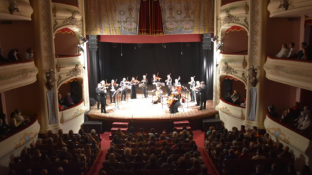 En la noche de este jueves se desarrolló el concierto de la Camerata Bariloche en el Teatro Municipal, a beneficio de la Biblioteca Rafael de Aguiar.