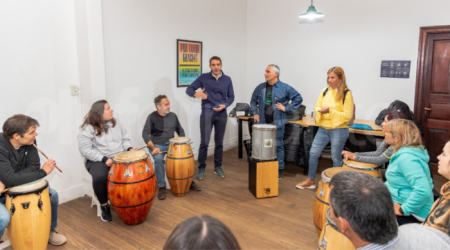 El intendente Manuel Passaglia visitó la escuela de percusión “A los Tamboree” dirigida por Eugenio Ortega, en ese marco anunció que el músico y compositor fue declarado Personalidad Destacada por sus 15 años de trayectoria.
