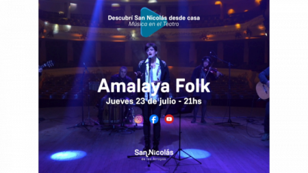 El grupo folclórico “Amalaya Folk” presentará sus temas este jueves 23 de julio a las 21 hs. en el marco del Ciclo “Música en el Teatro”. Esta serie de espectáculos, organizado por la Municipalidad de San Nicolás