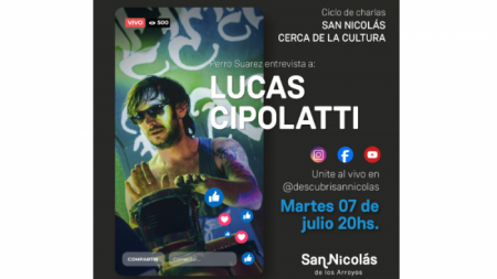 Este martes 7 de julio a las 20 hs. se transmitirá una entrevista en vivo con el percusionista Lucas Cipolatti a través de las redes sociales de Descubrí San Nicolás.