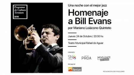 El próximo 24 de octubre a las 20:30 hs en el Teatro Municipal Rafael de Aguiar tendrá lugar un nuevo espectáculo del ciclo cultural Ternium 2019, recreando una noche de Jazz en reconocimiento a Bill Evans