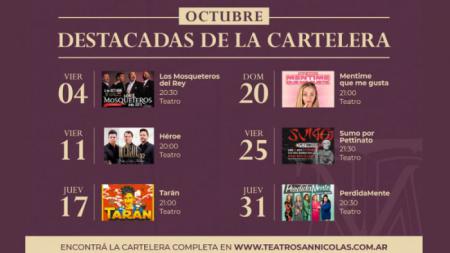 La cartelera del mes de octubre llega renovada para que los nicoleños disfruten de cada fin de semana con espectáculos para todos los gustos.