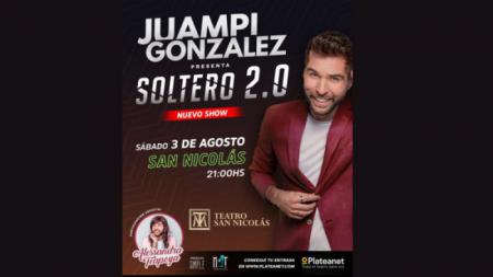 Este sábado 3 de agosto a las 21:00 llega al Teatro San Nicolás el espectáculo más exitoso de humor de los últimos años: Soltero 2.0 es la nueva versión de un show en el que Juampi González.