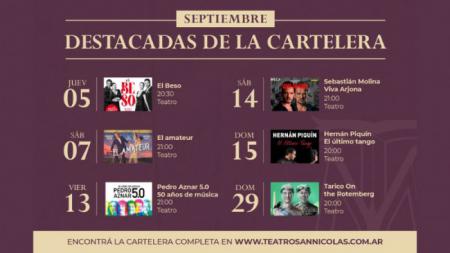 La cartelera del mes de septiembre llega renovada para que los nicoleños disfruten de cada fin de semana con espectáculos para todos los gustos.